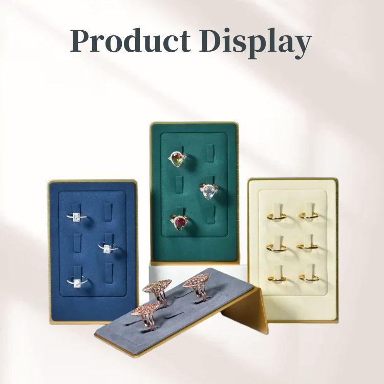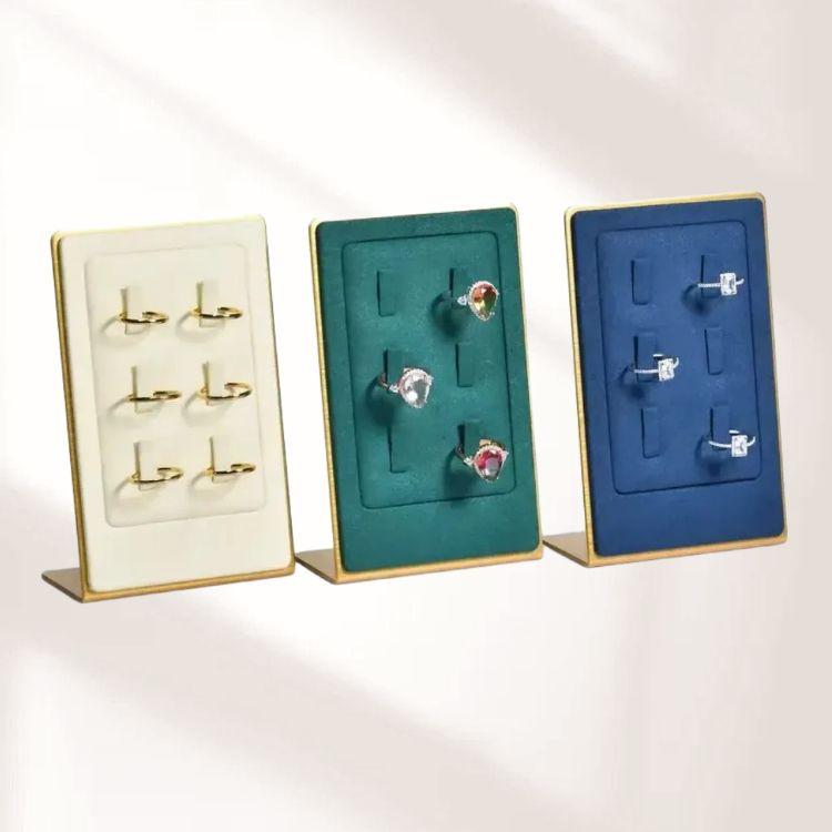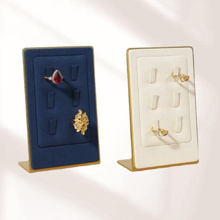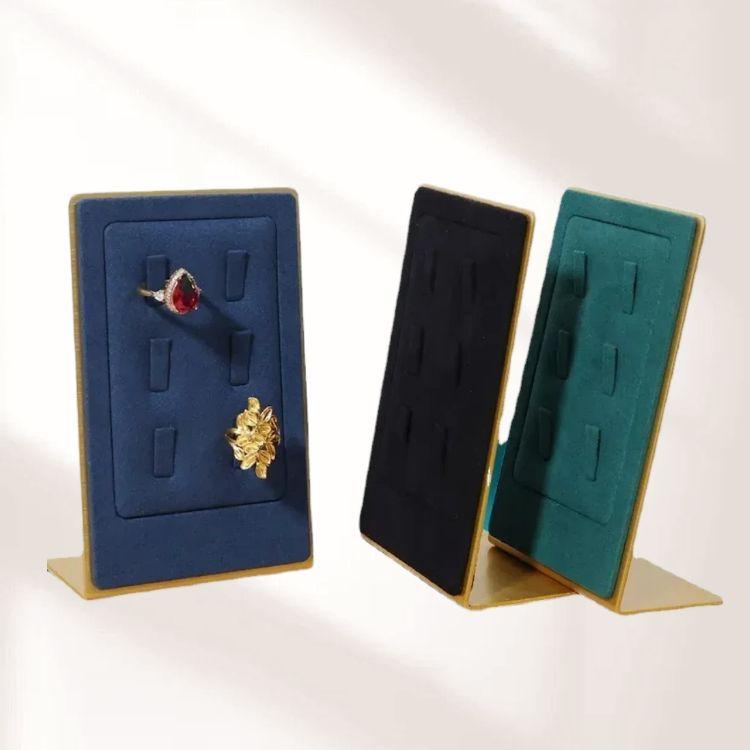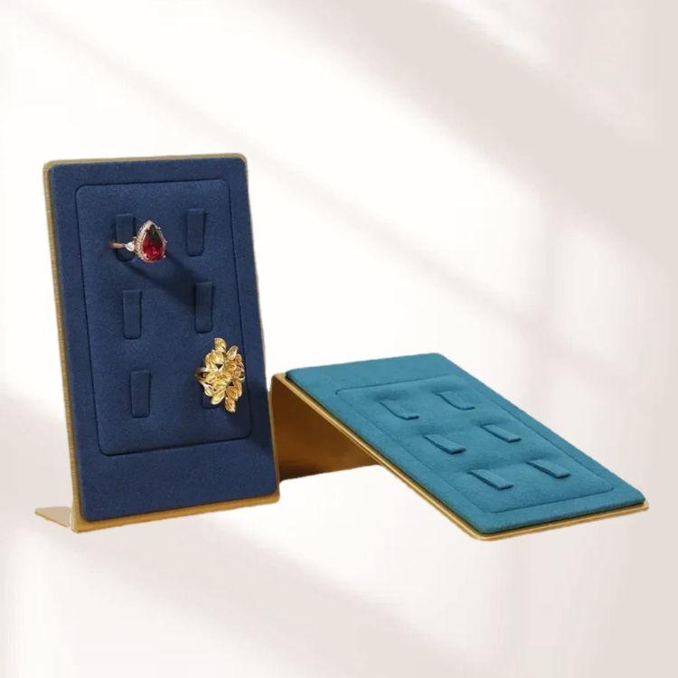 FADELI Metal Stands Jewelry Display Prop Microfiber Blue Jewellery Holder Metal Ring Display Stand